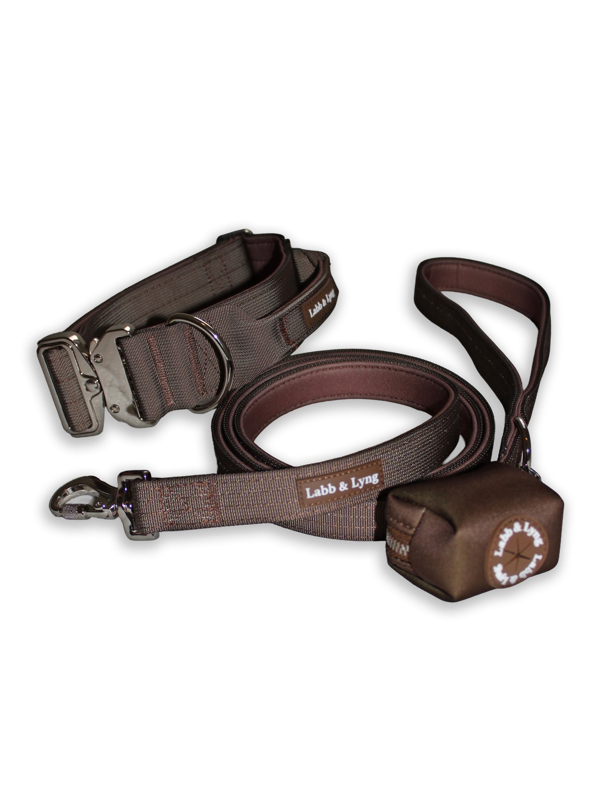 Dette settet består av et halsbånd, et bånd på 1,8 meter, og en bæsjeposeholder med pose inni.